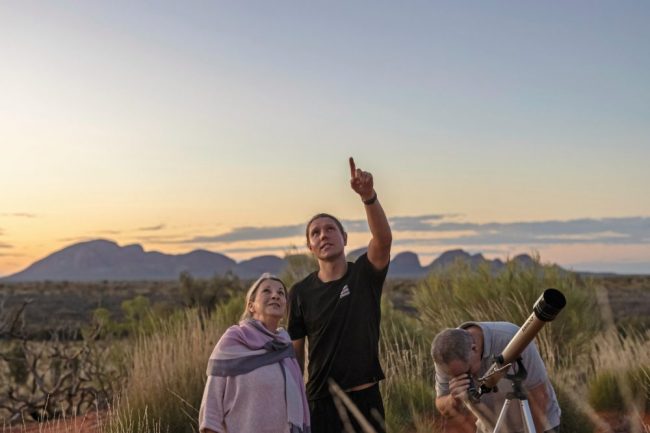 Heute starten Sie in Richtung Osten, um dem schillernden Zauber eines Sonnenaufgangs in der Wüste zu folgen – ein unvergessliches Erlebnis! Das Aufwachen vor Sonnenaufgang tief im Nationalpark ist etwas für sich, das bisher nur wenige Besucher genießen durften. Ihre Guides servieren Ihnen das Frühstück, während Sie die ersten Sonnenstrahlen des Tages genießen, bevor Sie Ihr Abenteuer fortsetzen, um die südliche Kata Tjuta-Düne zu finden. Nach einigen Stunden der spannenden Erkundung haben Sie sich eine wohlverdiente Pause verdient. Wie wäre es mit einem Mittagessen in einer schattigen Schutzhütte, Wiltja? Nach der spannenden Wüstendurchquerung erreichen Sie Camp Two. Es liegt auf halbem Weg zwischen Kata Tjuta und Uluru. Ein weiterer fantastischer Ort mit durchdacht gestalteten Zelten und weichen Betten erwartet Sie. Hier verbringen Sie einen komfortablen Abend in der Wüste. Genießen Sie einen herrlichen Nachmittagstee und entspannende Fußbäder, während Sie den atemberaubenden 360-Grad-Blick auf den faszinierenden Nationalpark genießen. Freuen Sie sich auf weitere Erfrischungen und ein köstliches Abendessen bei wunderschöner untergehender Sonne! Anschließend werden Ihre Guides Ihnen den faszinierenden Nachthimmel erklären und Sie dann unter Zeltplanen oder unter dem unglaublichen Sternenhimmel einschlafen – ganz nach Ihrer Wahl! Eine Nacht im Canvas Zelt im Camp Two. (Frühstück, Mittagessen, Abendessen)