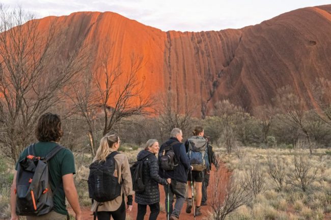 Heute wandern Sie näher an den Uluru heran und nehmen am Liru Walk teil. Sie setzen Ihr Abenteuer entlang des Lungkata Walk fort und machen eine Pause. Sie haben das Privileg, dass die Ältesten der Anangu Sie zum Mutitjulu Waterhole führen und Ihnen die Geschichten und Weisheiten ihrer Vorfahren erzählen. Am Fuße des Uluru ist es schwer, die Kraft und Energie zu ignorieren, die einem umgibt. Wenn es die Umstände erlauben, machen Sie einen Abstecher zum Uluru-Basisrundgang oder ins Uluru-Kata Tjuta Cultural Centre. In der Lodge kommen Sie zu einem letzten Abendessen im Gemeinschaftsraum zusammen und feiern die Erfahrungen der vergangenen Tage. (Frühstück, Mittagessen, Abendessen)