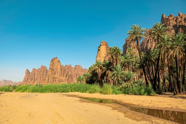 (Sonntag) Nach dem Frühstück Fahrt Richtung AlUla. Unterwegs halten Sie im Wadi Disah, einem erstaunlich ruhigen, malerischen Tal. Genießen Sie die Atmosphäre in der von Palmen und Süßwasserbächen gesäumten Oase, die eingebettet in hoch aufragenden Steilhängen aus rotem Sandstein und atemberaubenden Canyon-Gipfeln liegt. Genießen Sie ein köstliches Picknick mit ruhigem Blick in die umgebende Landschaft. Weiterfahrt nach AlUla. 3 Nächte im Sahary AlUla Resort (gehobene Mittelklasse, Landeskategorie 4 Sterne). (Frühstück, Picknick, Abendessen)