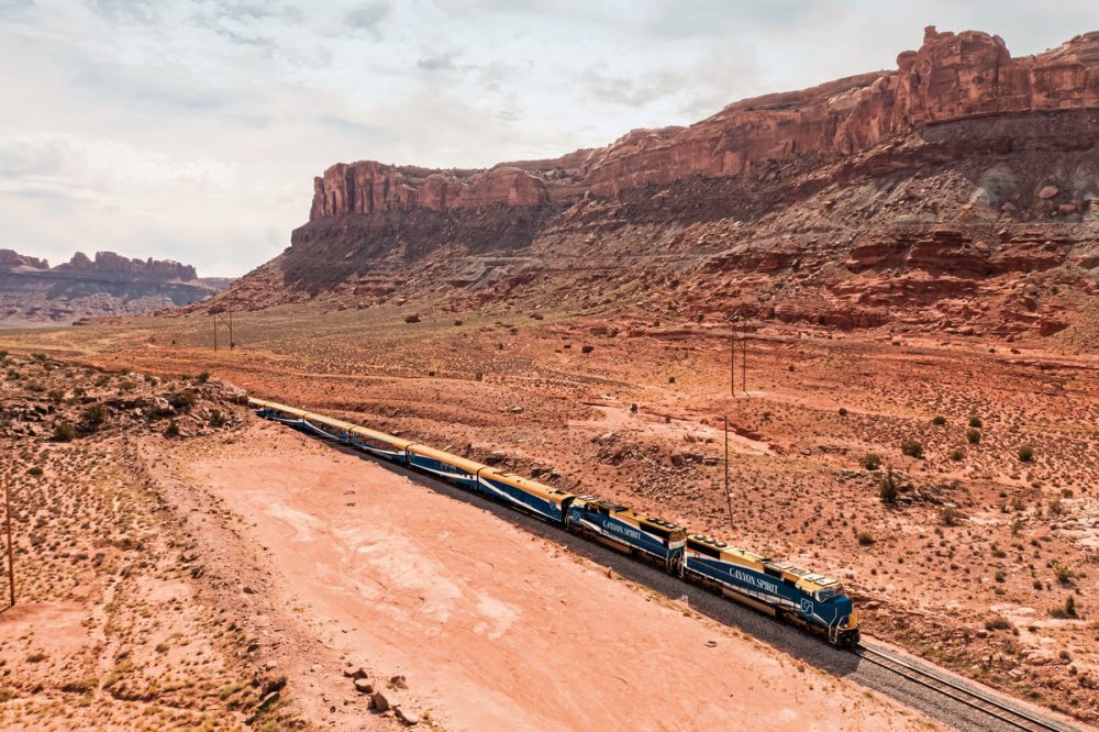 Entdecken Sie das Herz des amerikanischen Westens. Mit dem Canyon Spirit Sie fahren entlang faszinierender Landschaften, bestaunen über Jahrtausende geformte Naturwunder und genießen dabei einen ausgezeichneten Service, ganz bequem an Bord des Zuges.