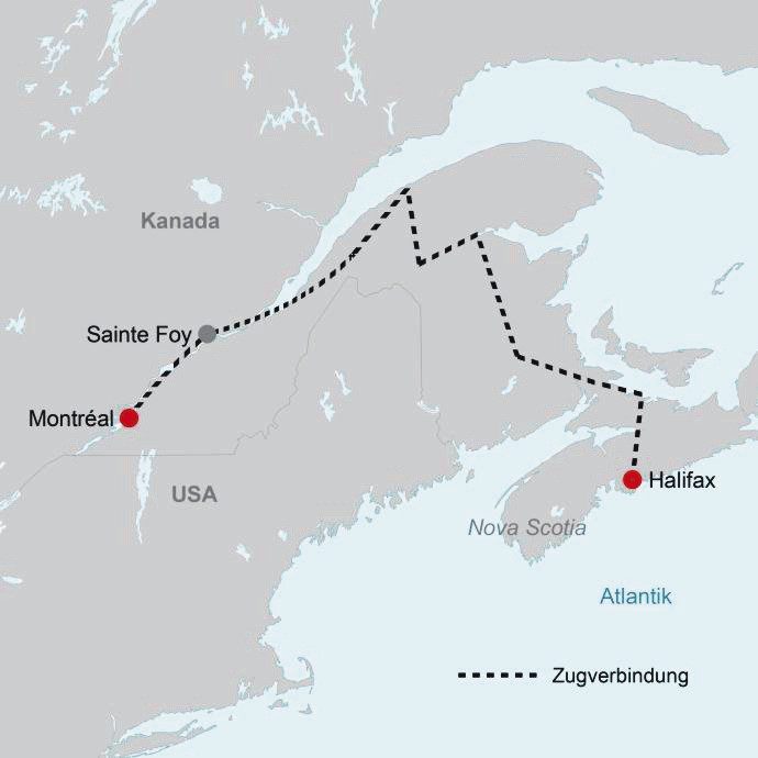 - Auch buchbar in umgekehrter Richtung ab Halifax/bis Montréal. Anf R, Leistung YHZ22100B.