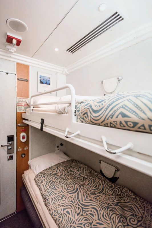 Bei dieser Bahnreise mit dem "The Ocean" übernachten Sie in einer Kabine (Cabin for 2) mit Panoramafenstern und bequemen Sitzen. Abends werden die Sitze zusammen geklappt und ein Bett bzw. Etagenbett steht Ihnen zur Verfügung. Waschbecken und WC befinden sich in der Kabine, die Duschkabine im Wagon. Tagsüber können Sie in der Service Car Lounge mit Ihren Mitreisenden gemütlich zusammensitzen und die vorbei ziehende Landschaft betrachten.