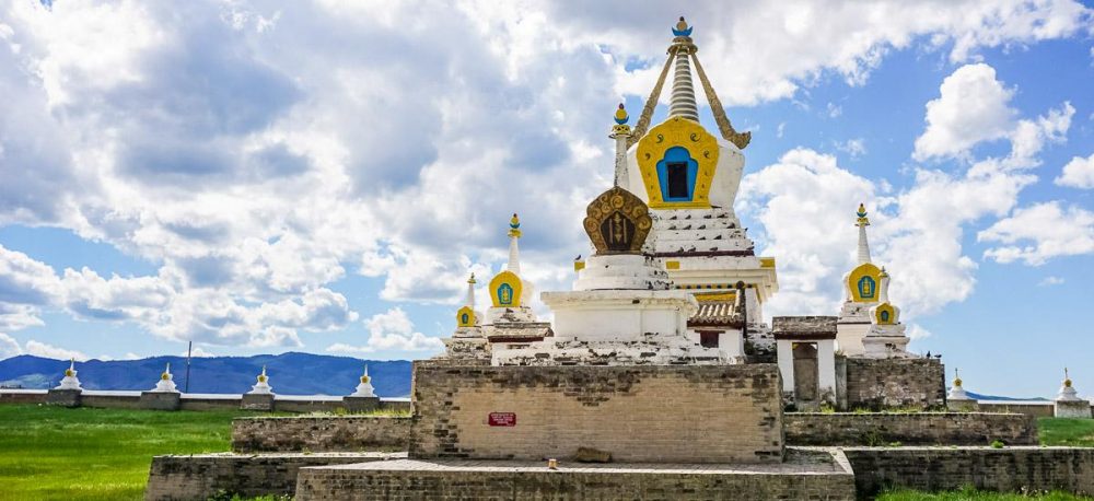 Heute fährst du zum Ongi-Kloster, das auf beiden Seiten des Ongi-Flusses in einem kleinen schwarzen Lavagebirge liegt. Der 435 Kilometer lange Fluss entspringt im Changai-Gebirge und verläuft durch die Wüste Gobi, bis er in den Roten See mündet. Mittlerweile ist der Fluss vom Austrocknen bedroht: 1998 versiegte er zum ersten Mal. Du besichtigst die Klosterruine, denn wie alle Klöster wurde auch diese Anlage zerstört. Seit etwa 15 Jahren erinnert eine Stupa an die in den 1930er Jahren getöteten Lamas. In einem neu errichteten Tempel praktizieren heute wieder ein paar Mönche. Neben einem kleinen Museum sieht man auf einem nahe gelegenen Hügel Tierskulpturen. Das Kloster war einst ein Zentrum der buddhistischen Bildung für Medizin, Philosophie und Astrologie.