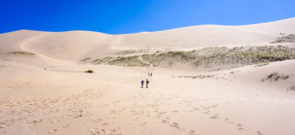 Der Aufstieg zum Gipfel der Sanddüne dauert insgesamt etwa 1 ½ Stunden und setzt ein gutes Maß an Ausdauer und Kondition voraus. Bitte besprich vorher mit deiner Reiseleitung, ob diese Wanderung für dich geeignet ist.