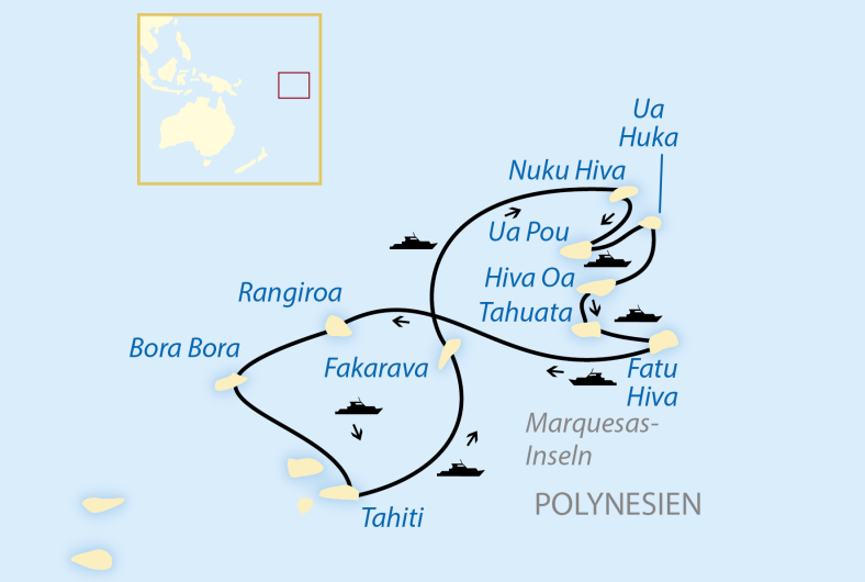 Reisen Sie mit dem modernen und komfortablen Postschiff Aranui 5 zu Ihrem Wunsch-Termin zu den abgelegenen Tuamotu- und Marquesas-Archipelen im Süd-Pazifik. Lassen Sie sich von der Schönheit der Inseln und der Freundlichkeit der Bewohner verzaubern!