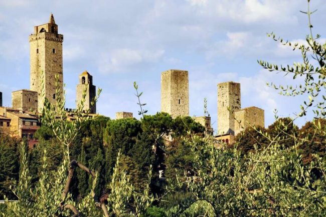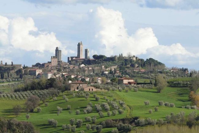 - Die schlanken Türme von San Gimignano aus der Ferne erspähen