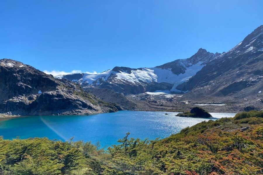 Morgens packen wir unseren Rucksack für die heutige Nacht. Von unserem Ausgansort El Chaltén starten wir unsere Wanderung. Wir wandern eine Weile ins Tal hinein und steigen einen steilen Hang in Serpentinen bis zur Laguna de los Tres (ca. 1.180 m) hinauf. Die Anstrengung hat sich gelohnt! Über den Gletscherfeldern thront das gewaltige Granitmassiv mit dem Fitz Roy in der Mitte und die kristallklare Lagune liegt zu unseren Füßen. Am Nachmittag wandern wir zurück zum fest eingerichteten Zeltcamp Poincenot, wo wir unsere heutige Nacht verbringen werden. (F, M, A)