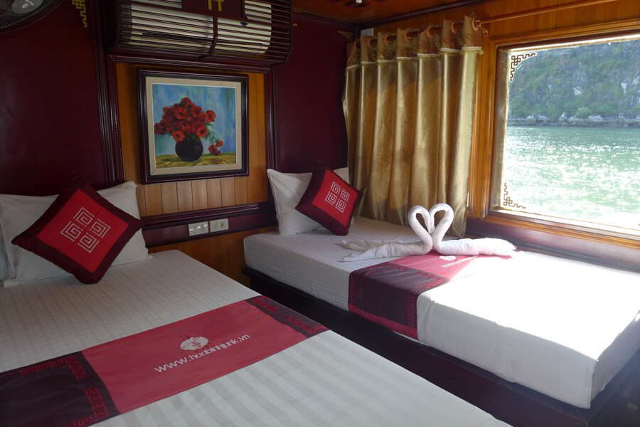 Nach dem Frühstück fahren wir Richtung Meer: An der Küste steigen wir um auf eine Dschunke, mit der wir in See stechen. Unser Ziel: die Bai Tu Long Bucht - die unbekannte Schwester der berühmten Halong Bucht. Den ganzen Nachmittag schippern wir durch die Wunderwelt aus bizarren Inseln und Karstformationen. Unterwegs wechseln wir auf Kajaks und können so die Felsen aus nächster Nähe erkunden (ca. 1 Stunde). Abends gehen wir vor Anker und lassen uns das leckere Essen an Bord schmecken. Die Nacht verbringen wir auch auf unserer Dschunke. (F, M, A)