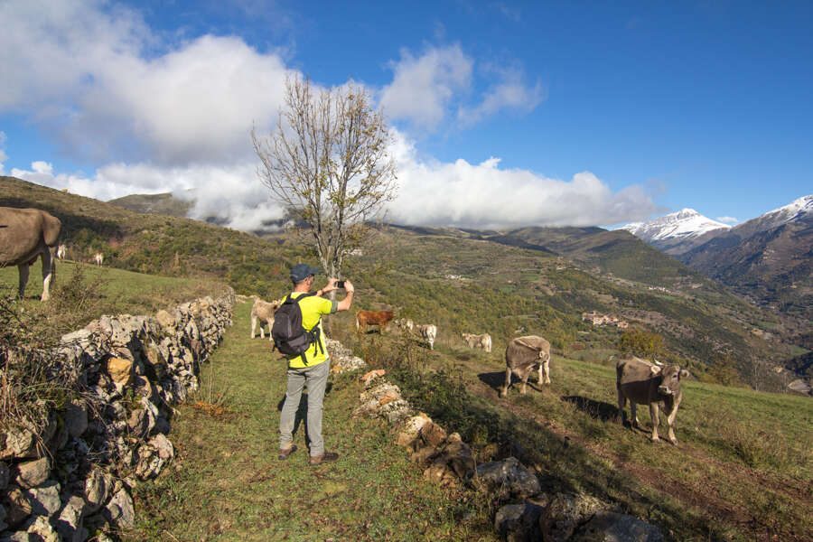Starten Sie den Tag gut gestärkt - heute steht Ihre längste Etappe bevor. Zunächst durchziehen Sie die Gässchen von Les Esglésies, bevor der Weg Sie nach Sentís führt. Schon bald beginnt der Aufstieg zur Anhöhe von Prat d’Hort. Von hier aus steigen Sie ab und erreichen über den Pass von Perves nach einem erneuten Aufstieg die Bergkette von Comillini. Der Weg ist anstrengend, aber sobald Sie das "verzauberte Haus" erreichen, werden Sie mit einer atemberaubenden Aussicht über das Tal und auf die umliegenden Bergketten belohnt. Nach einem steilen Abstieg erreichen Sie das Dorf Cadolla. Von dort aus führt ein alter Pfad nach Senterada. (F, M, A)
