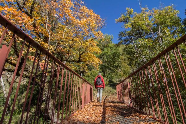 Sie nehmen den historischen Pfad nach La Plana de Mont-ros und steigen auf nach Castell-estaó. Nehmen Sie sich Zeit, um die eindrucksvolle Aussicht über das Tal zu genießen. Schließlich geht es auf alten Wegen weiter Richtung Antist und danach Richtung Estavill. Von hier aus steigen Sie ab zum Kloster Torres und zur Teufelsbrücke. Sie erreichen das verlassene Dorf La Bastida und wandern vorbei an mehreren kleinen Dörfern und einer hübschen Kapelle, bevor Sie Les Esglésies erreichen. (F, M, A)