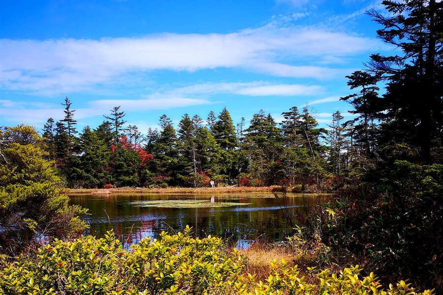 - Durch den Herbstwald der Shiga-Hochebene auf dem "Ikemeguri Nature Trail" wandern