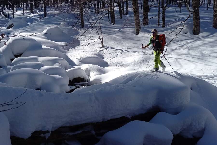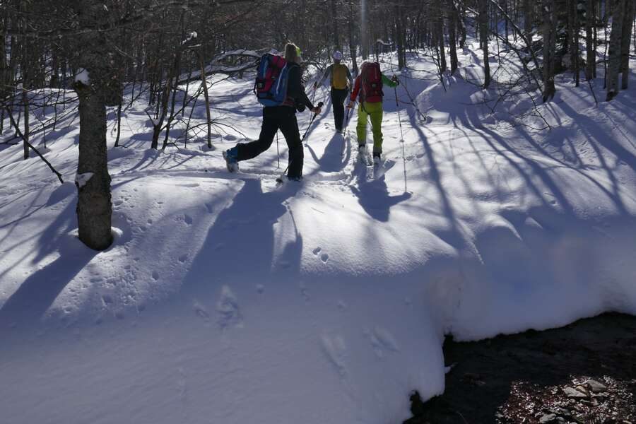 Von Dragash aus erreichen wir nach kurzer Fahrt ein kleines Dorf der Volksgruppe der Goranen. Unser Aufstieg beginnt auf 1.350 m und führt mit Blick über die Dächer und die Gipfel der Umgebung in den Wald. Nach etwa drei Stunden haben wir die Bergspitze des Kleq (2.467 m) erreicht. Vom Kamm, der die Grenze mit Nordmazedonien bildet, blicken wir auf das hübsche Leshnica-Tal hinab und auf den zweithöchsten Gipfel des Nachbarlandes, den Titov Vrh (2.747 m). Die Abfahrt auf den schönen Nordhängen ist ein Genuss. Anschließender fahren wir zu unserem Hotel am Prevalla-Pass, der Ausgangsbasis unserer Touren der nächsten Tage. (F, M, A)