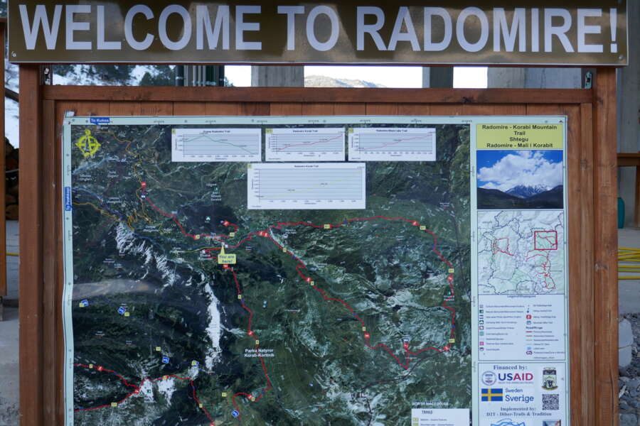 Flug nach Pristina. Nach der Ankunft am Flughafen treffen wir uns um 12:00 Uhr mit unserem lokalen englischsprachigen Skiführer. Wir reisen einmal durch den Kosovo und überqueren die Grenze nach Albanien. Die Fahrt führt landschaftlich reizvoll durch die Gipfel des Korab-Koritnik Gebirges hindurch zum Dorf Radomire, wo wir übernachten. Beim Abendessen erfahren wir von unserem einheimischen Skiführer mehr über die Reise. (A)