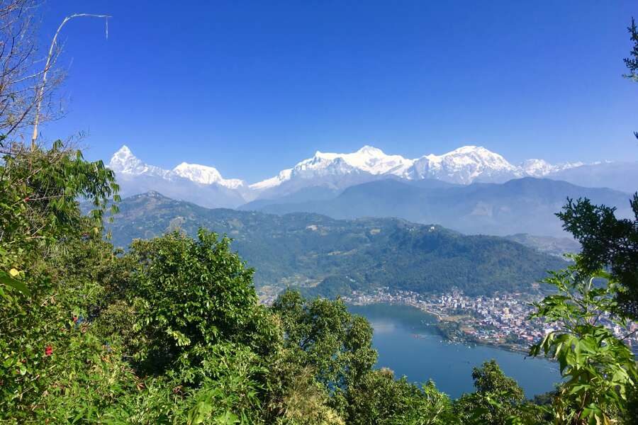 Bevor wir Bandipur am späten Vormittag verlassen, starten wir auf eine kleine Wanderung nahe der Ortschaft und gehen auf die Jagd nach dem besten Aussichtspunkt. Anschließend bringt uns der Bus ins Tal von Pokhara (800 m). Die Stadt erstreckt sich über eine weite Fläche und ist in eine bezaubernde Berglandschaft eingebettet. Lohnenswert ist ein Bummel entlang der vielen Souvenir- und Trekkingläden zu den Gartencafés am Seeufer. Vom Ufer bietet sich bei klarem Wetter ein imposanter Blick auf die Achttausender-Massive Dhaulagiri und Annapurna mit dem "Fischschwanz" Machhapuchare. (F)