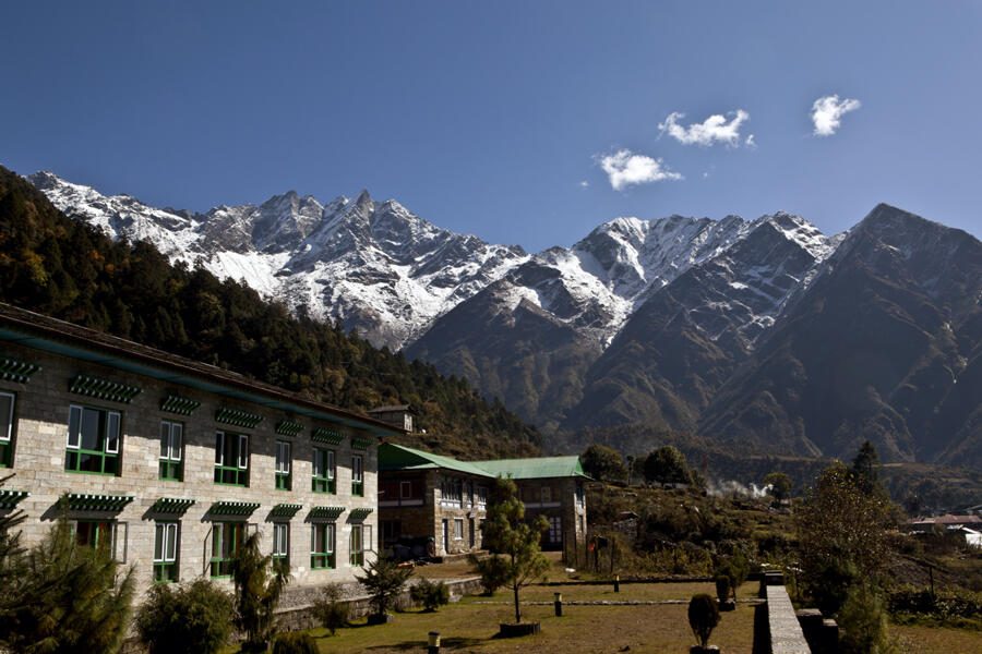 Vormittags wandern wir entlang des Dudh Kosi über Benkar (etwa 1 Std.) nach Monjo, vorbei an Tannen und Magnolien und durch Rhododendronwälder. Am Ortsausgang von Monjo passieren wir den Police-Check-Post am Eingang zum Sagarmatha-Nationalpark. Während der Kontrolle bietet sich die Gelegenheit, dem Gemeindehaus von Monjo einen Besuch abzustatten. Das 2019 vollendete Bauprojekt wurde von der Sir Edmund Hillary Stiftung Deutschland, Hauser Exkursionen und The Greater Himalayas Foundation unterstützt. Nach Monjo steigt der Weg zuerst leicht an, führt über die Hillary-Hängebrücke über den Bhote Kosi und dann auf einem guten, aber steilen Weg aufwärts ins Sherpa-Zentrum Namche Bazar (3.440 m), dem wichtigsten Ort im Khumbu-Gebiet. Wir richten uns in der Lodge von Mountain Lodges of Nepal in Namche ein. Von unserer Unterkunft an den oberen Hängen des Sherpa-Hauptortes Namche Bazar genießen wir einen atemberaubenden Blick auf die umliegende Bergwelt. Nachmittags können wir noch einen Rundgang durch die Geschäfts- und Souvenirstraße machen. (F, M, A)