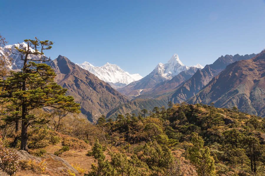 - Nuptse, Mount Everest, Lhotse und Ama Dablam – Zu imposanten Gipfeln aufblicken