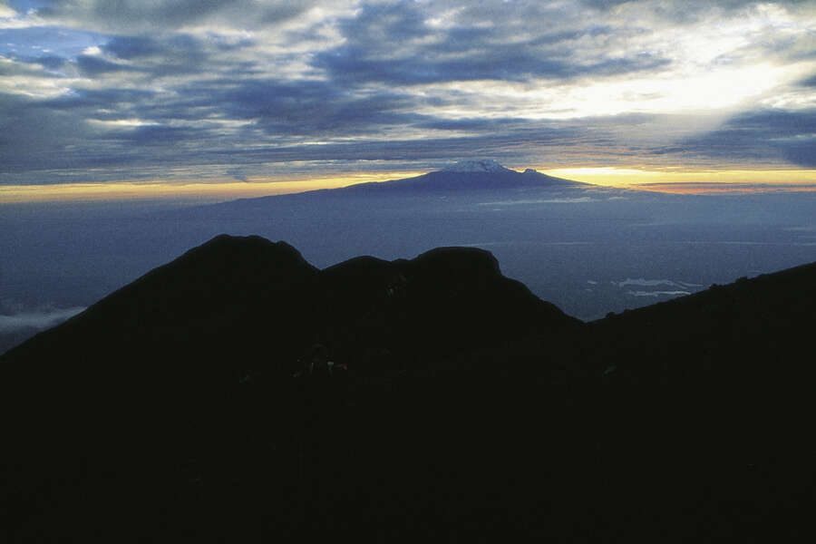 Wir verlassen die Saddle Hut frühmorgens nach Mitternacht. Die letzten 1.000 Höhenmeter zum 4.565 m hohen Socialist Peak verlaufen steil und sind anstrengend. Doch der Ausblick vom Gipfel ist sagenhaft und der Moment unvergesslich, wenn die Sonne hinter dem Kili-Massiv aufsteigt und die weite Ebene dazwischen langsam orange-rot zu leuchten beginnt. Wir genießen diese intensiven Augenblicke und machen uns allmählich für den Abstieg bereit. Auf bereits bekanntem Weg geht es hinunter zur Miriakamba-Hütte (2.514 m), wo wir die Nacht verbringen. (F, M, A)