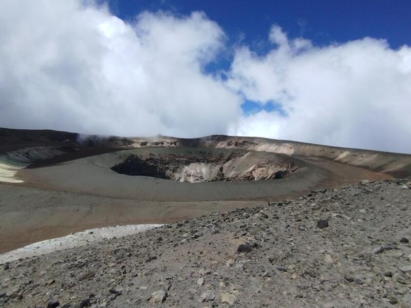 - Vom Reusch-Krater in den "Ash Pit" des schlafenden Vulkans blicken ↑ 50 m, ↓ 150 m, 2 Std.