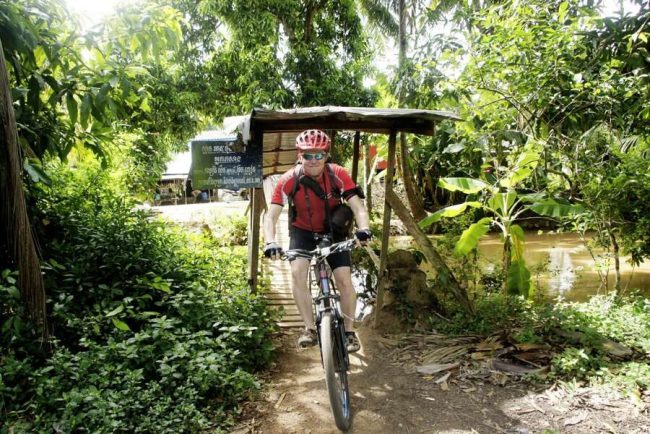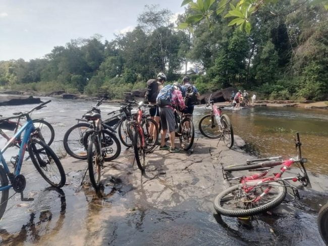 In den Kardamon Bergen gibt es einen der größten Primärurwälder Südostasiens. 2002 wurde in Chi Phat die Wildlife Alliance gegründet. Diese begann, durch ein gemeindebasiertes Projekt (CBET – Community Based Ecotourism Project), um ein Umdenken in der Bevölkerung zu initiieren, indem sie den Ökotourismus ankurbelte.Davon profitieren die Menschen in Chi Phat direkt, ohne die natürlichen Ressourcen ihrer Umgebung zu zerstören. Ein sehr ambitioniertes Vorhaben, das einige Rückschläge erfuhr, aber auch Früchte trägt: Die Gegend regeneriert sich, Aufforstungsprojekte sind erfolgreich und das Wild kehrt in den Wald zurück. Darüber hinaus ist es gelungen, das weitere Vordringen der Holzfäller einzudämmen.Die heutige Bike-Etappe ist mit Routen auf Pisten, Trails, Fels- und Sandwegen mit Flussüberquerung sehr abwechslungsreich. Auf kleinen Trails erkunden wir den Dschungel vom Fahrrad aus. Alternativ kann die 14 km rostrote Sandpiste als einfachere Route gewählt werden. Unser gemeinsames Ziel ist der traumhafte Wasserfall O'Malu, der mitten im Dschungel liegt und an seinem Fuße zu einem Bad einlädt. Man hat hier das Gefühl, mitten in einem unberührten Paradies gelandet zu sein. Wir besuchen das Dschungel-Dorf O'Kay, wo wir auch übernachten. (F, M, A)