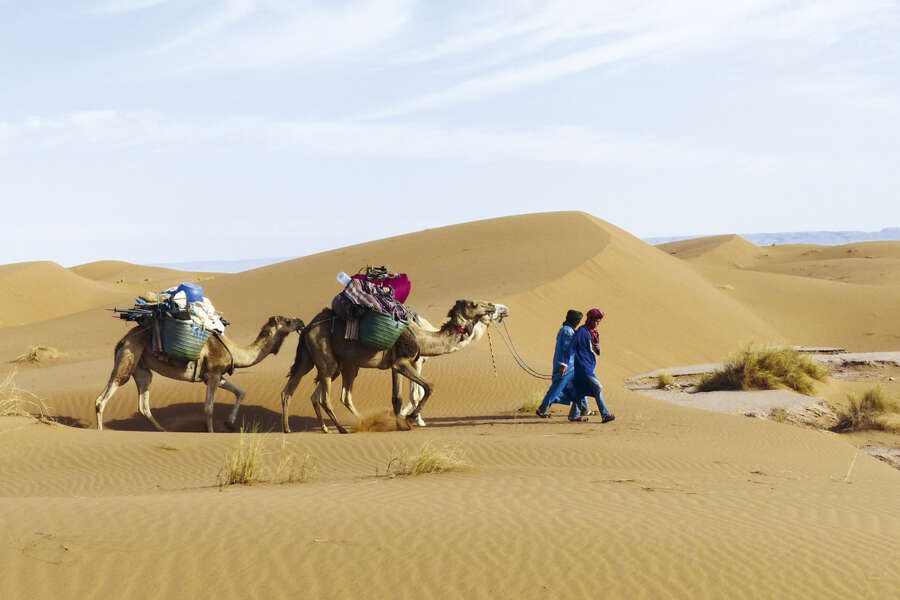 - An der Seite von Beduinen und ihren Kamelen die Chegaga-Wüste durchqueren