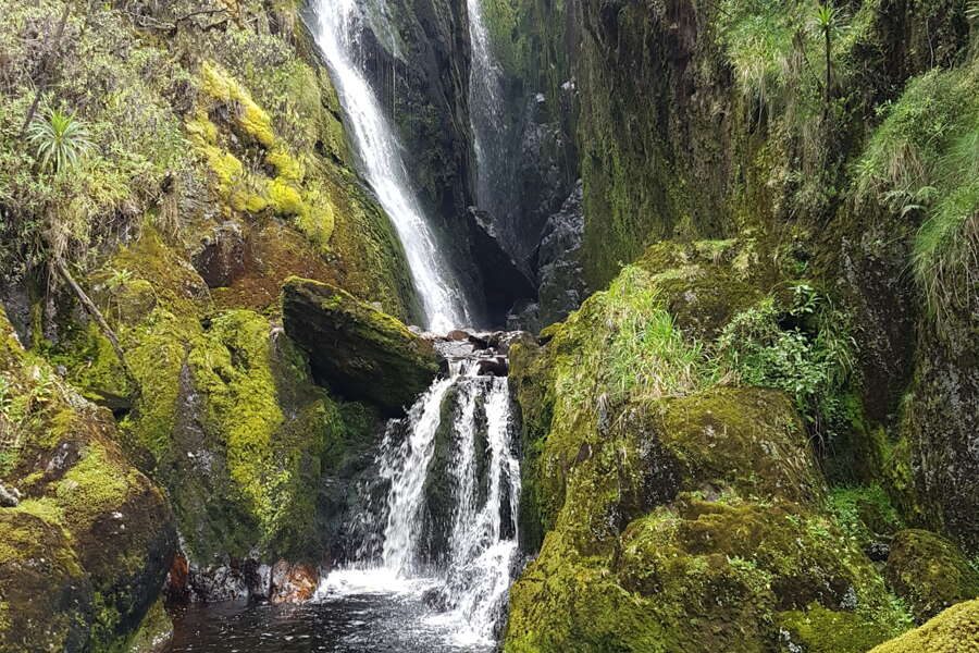 Vogelgezwitscher weckt uns. Am Eingang des Ruwenzori-Nationalparks warten unsere Guides bereits auf uns. Wir lassen die Zivilisation hinter uns und tauchen ein in den immergrünen Bergwald. Entlang des Mubuku-Flusses steigen wir auf, vorbei an lianenbehangenen Bäumen. Im Ruwenzori-Nationalpark erwartet uns atemberaubende Landschaft und sensationelle Flora. Der Pflanzengigantismus ist beeindruckend: Pflanzen, die andernorts winzig sind, erreichen hier Baumhöhe. Heidekraut wird bis zu acht Meter hoch, Lobelien mannshoch. Gigantische Mahagonibäume und Feigen bilden ein dichtes Blätterdach. Hier leben viele Primaten, endemische Vögel und das Drei-Horn-Chamäleon. Wir queren einen kleinen Nebenfluss und steigen über einen Bergrücken zum Bambuswald auf. Die Nyabitaba-Hütte liegt auf 2.670 m Höhe und ist unser heutiges Lager. (F, M, A)