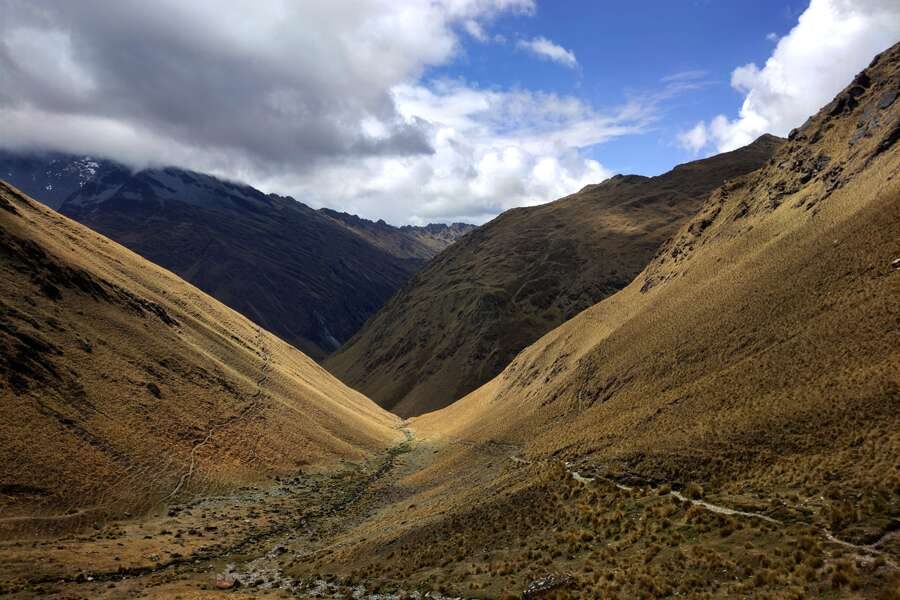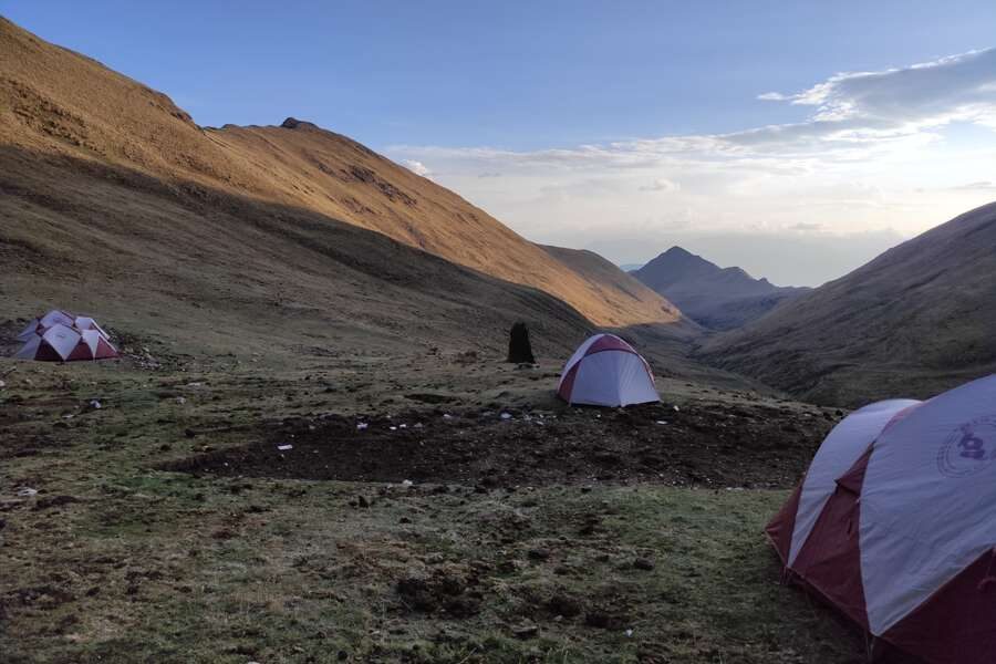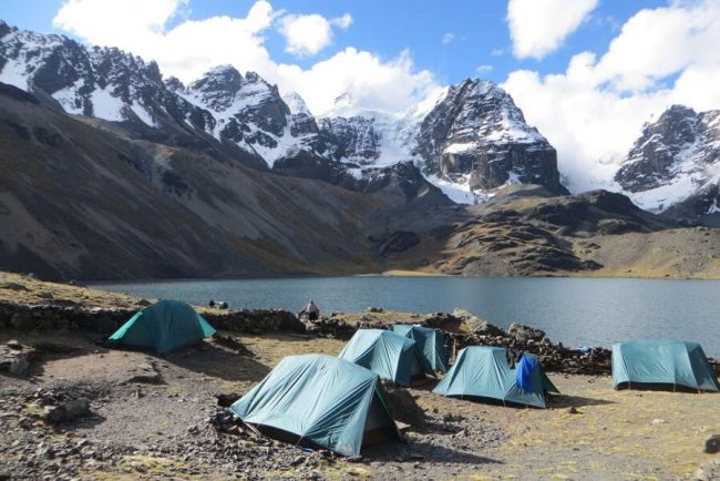 Unsere heutige Tagesetappe beginnt mit einem steil ansteigenden Stück bis wir den ersten Pass bei Tambomchay erreichen. Von hier aus sehen wir mit etwas Glück Kondore über unseren Köpfen kreisen. Es folgt ein weiteres Stück bergauf, bis wir uns bei unserer Mittagspause etwas ausruhen können. Bei guter Sicht genießen wir den Blick auf den Salkantay und Humatay. Wir wandern weiter in Richtung Cruzjasa Pass, von wo wir unsere Blicke auf die Südseite des Palcay und des Salkantay, sowie in das Pampacahuana Tal schweifen lassen. Wir begegnen mit hoher Wahrscheinlichkeit nicht vielen anderen Wanderern und haben somit die Möglichkeit, in die Ruhe und Einsamkeit dieser Region einzutauchen. Unsere letzte Etappe für den heutigen Tag führt uns bergab zu unserem Camp Pampacahuana, von wo wir mit etwas Glück den Sonnenuntergang bestaunen können. Schlafhöhe: ca. 4.010 m (F, M, A)