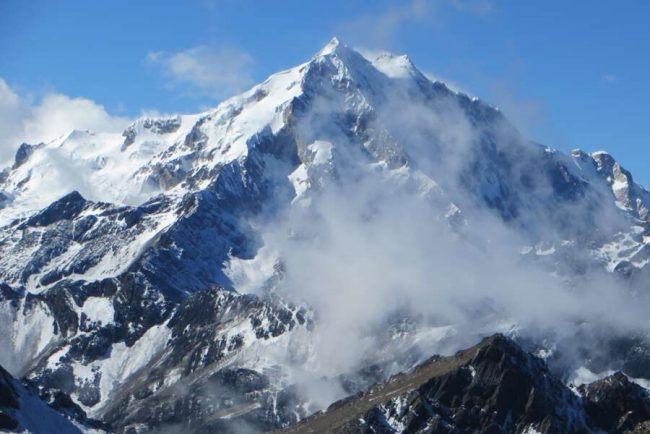 Heute besteigen wir den 5.348 m hohen Cerro Negro, der auch unter dem Namen Pico Austria bekannt ist. Dieser Berg ist im Gegensatz zu den meisten der umliegenden Gipfel nicht vergletschert. Bei klarem Wetter bietet sich ein spektakulärer Panoramablick auf die gesamte Cordillera Real und hinab ins Altiplano mit dem strahlend blauen Titicaca-See. Zunächst wandern wir auf einem steilen Pfad mit losem Gestein und evtl. über Altschnee bis zu einem ersten Gipfel auf circa 5.100 m. Schon von hier aus hat man eine großartige Sicht auf die umliegenden Berge. Es geht weiter bergauf, bis wir schließlich den Gipfel des Cerro Negro erreichen. Wer den Gipfel nicht besteigen möchte, kann einen Wanderausflug vom Lager aus entlang der blauen Lagunen und bis in die Nähe der Gletscherregion unternehmen. (F, M, A)