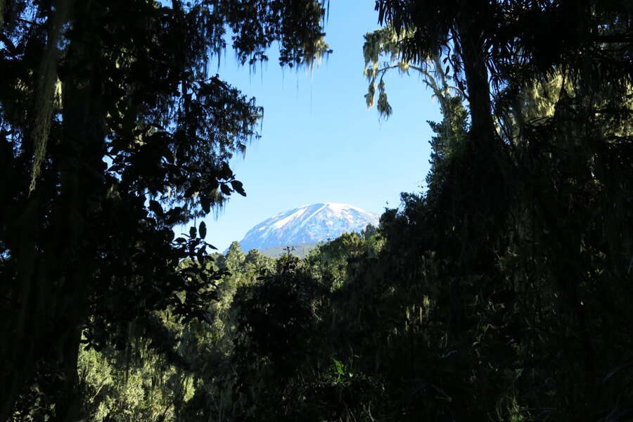 Früh fahren wir nach Machame, dem Ausgangspunkt für die Kilimanjaro-Besteigung. Nach der Meldung am Gate (1.790 m) steigen wir mäßig an auf einem breiten Waldweg, der bald in einen Pfad übergeht. Durch feuchten Regenwald geht es weiter. Zum Teil sind große Stufen und steile Passagen zu überwinden. Der Weg führt ständig über Wurzelwerk, durch üppigen Regenwald mit Kilimanjaro-Springkraut, Farn und vielen anderen Pflanzen. Je nach Wegbeschaffenheit, kann es sein, dass unsere Füße auch mal im Schlamm einsinken, Gamaschen sind hier gegebenenfalls hilfreich. Wir erreichen das Machame Camp (2.835 m), wo der Regenwald in die Hochmoorlandschaften übergeht.