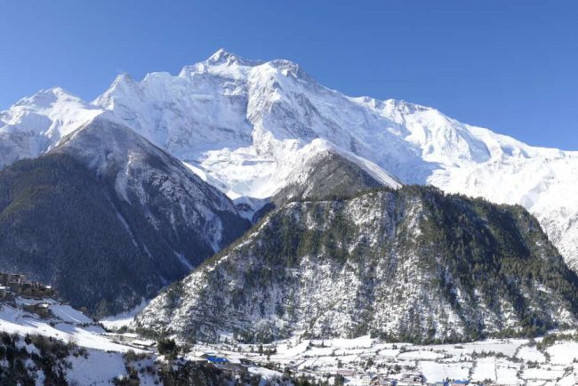 Wir halten uns zuerst noch auf der rechten Talseite und wandern über Charting weiter. Wieder am linken Flussufer geht es durch lichten Fichten- und Föhrenwald bergan. Wenn wir aus dem engen Tal zum Ort Pisang (3.300 m) hinaufgehen, eröffnet sich eine herrliche Aussicht auf die imposante Gipfelsilhouette der Annapurna II und den Pisang Peak (6.091 m). Nachmittags können wir im Ortsteil Upper Pisang das buddhistische Kloster besuchen. Dort stehen wir der Annapurna direkt gegenüber – ein fantastischer Blick! (F, A)