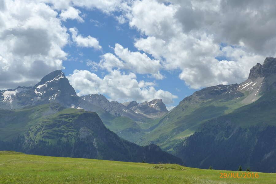 Unser erster Wandertag beginnt direkt hinter dem Hotel und führt uns in das Valletta da Beiva. Über den idyllischen Weg gelangen wir oberhalb des Tals zum Gipfel des Stallerbergs (2.581 m). Nach dem Anstieg gönnen wir uns eine kurze Pause und folgen dem Weg, an zahlreichen Steinmännern vorbei, in südlicher Richtung zum Gipfel des Uf da Flüe (2.774 m), ein idealer Ort für unsere Mittagspause mit den mitgebrachten Lunchpaketen. Bei der Überschreitung des flachen Rückens bietet sich uns immer wieder ein Blick hinunter auf Juf, der höchst gelegenen und ganzjährig bewohnten Siedlung Europas. Am Fuorcla de la Valetta beginnen wir unseren Abstieg, der über einige Serpentinen kurz sehr steil, hinunter in die Vallettascharte und von dort über den wunderschönen Columbansee und schier endlose, weiche Almwiesen zurück nach Bivio führt. (F, A)