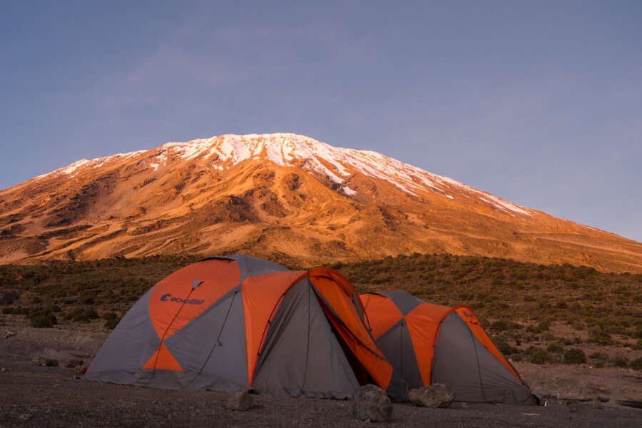 Die heutige Etappe dient der wichtigen Akklimatisierung. Wir wandern zunächst moderat ansteigend aus dem Moir Tal hinauf zur Lent-Gruppe, deren höchste Erhebung wir besteigen und von wo sich bei klarer Sicht weite Ausblicke über die Nordseite des Kilimanjaro eröffnen. Im Anschluss begeben wir uns auf den Northern Circuit, der uns fernab der üblichen Routen im Norden um den mächtigen Krateraufbau des Kilimanjaro herumführt. Hier sind vielleicht nur wir unterwegs – die Abgeschiedenheit und Stille des Northern Circuit haben ihren ganz besonderen Reiz. In stetigem Auf und Ab folgen wir dem schmalen Pfad bis zum Pofu Camp (4.020 m), das idyllisch inmitten karger Landschaft liegt. Dort schlagen wir unser Lager auf und genießen die Ruhe, bevor die Sonne langsam hinter dem Horizont versinkt. (F, M, A)