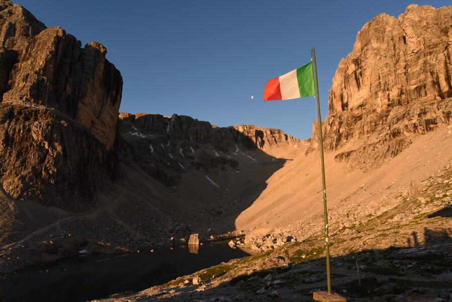 Nachdem wir gestern schon einen Eindruck des eindrucksvollen und historisch bedeutsamen Plateau des Monte Piano bekommen konnten, wandern wir heute auf Kriegswegen entlang der Stellungen auf der Ostseite weiter und anschließend über den Steilabbruch hinunter zur Malga Rinbianco. Nach dem Aufstieg zum Col de Mèdo lassen wir es uns bei unserer Mittagsrast auf der Langalm direkt vor den majestätischen Drei Zinnen, die wir den ganzen Tag schon im Blick haben, gut gehen. An der Drei-Zinnen-Hütte und den Bödenseen vorbei wandern wir weiter zu der kleinen aber feinen Büllelejochhütte, der höchstgelegenen Schützhütte im Naturpark Drei Zinnen. Unser letztes Nachtquartier ist mit nur 15 Schlafplätzen die kleinste Hütte unserer Dolomitendurchquerung. (F, A)