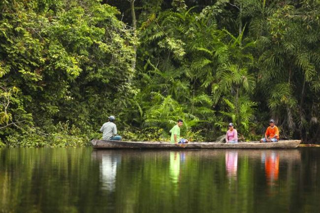 Nach dem Frühstück Fahrt mit dem öffentlichen Boot auf dem Amazonas bis zum Naturreservat (ca. 1,5 Std.). Nachmittags Wanderung in der Umgebung auf speziellen Urwaldpfaden, wo wir uns viele spannende Fakten über Flora und Fauna des Regenwaldes von unserem lokalen Guide erklären lassen. Die Wanderung endet mit einer Kanufahrt auf einem kleinen Fluss (abhängig vom Wasserstand, der aufgrund von Regen- und Trockenzeit stark schwanken kann), um die Geräusche des Urwaldes in Ruhe genießen zu können. (F, M, A)