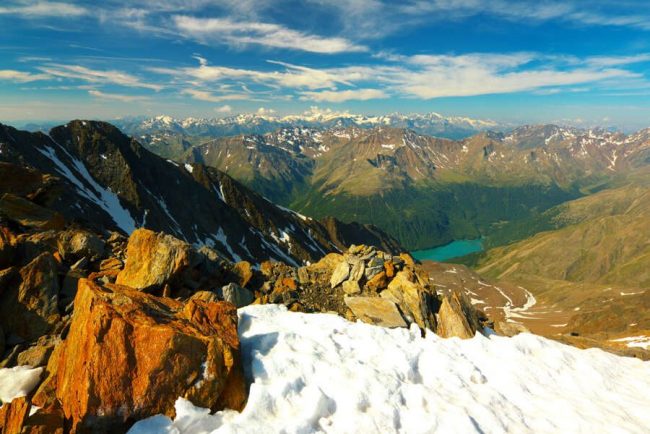Unser erster Teil der heutigen Etappe führt uns einige Höhenmeter aufwärts zur Braunschweiger Hütte. Je nach Wetter können wir für dieses Stück die Materialseilbahn nutzen und mit oder ohne Gepäck wandern. Der Weg führt spektakulär über einen drahtseilversicherten Steig entlang eines tosenden Wasserfalls – ein echter Höhepunkt und schweißtreibender Beginn unserer heutigen Etappe. Oben angekommen, gönnen wir uns eine Verschaufspause und genießen das herrliche Panorama. Wir folgen einem schmalem Bergpfad hinauf zum Pitztaler Jöchl (2.996 m), einem absoluten Highlight unserer Alpenüberquerung! Der Blick auf die Gletscherwelt rund um die Wildspitze ist überwältigend. Nach dem Abstieg ins Rettenbachferner-Skigebiet bringt uns der Gletscherbus durch den Tunnel zum Tiefenbachferner. Dort folgen wir einem spektakulären Panoramahöhenweg oberhalb des Venter Tals. Entlang steiler Hänge wandern wir bis nach Vent, wo sich unsere heutige Unterkunft befindet. (F, A)