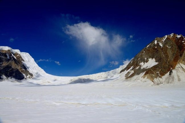 Früh geht es auf der rechten Seitenmoräne entlang zum Khani-Basa-Gletscher, nach dessen Querung wir schließlich das grüne Lager Khani Basa (4.500 m) auf der gegenüberliegenden Gletschermoräne erreichen. Vom Camp sieht man den eindrucksvollen Kanjut Sar (7.760 m.), der hoch über dem Khani-Basa-Gletscher thront. (F, M, A)
