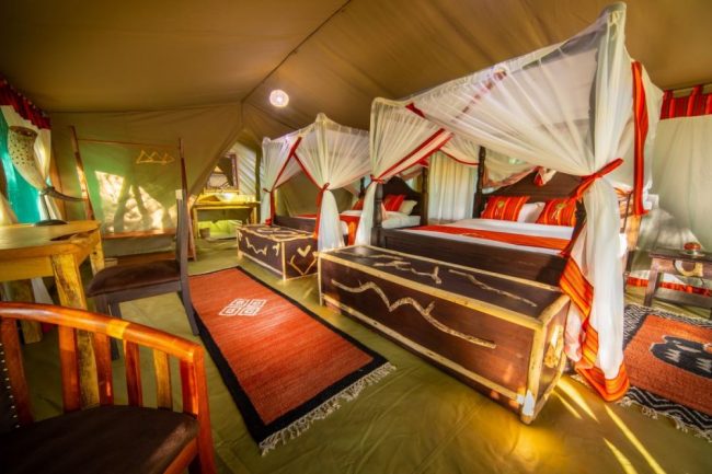 Genießen Sie vom Camp aus noch einmal den Anblick des Kilimanjaro – zu früher Stunde oft noch wolkenlos. Nach einer morgendlichen Pirschfahrt und dem Frühstück fahren Sie zunächst zum Tsavo-West-Nationalpark, der durch die berühmte Bahnstrecke von Tsavo-Ost getrennt ist, die zusammen Kenias größtes Naturschutzgebiet bilden. Tsavo-Ost zeichnet sich durch seine trockene, markante Landschaft mit tiefroter Erde aus. Die hier lebenden „roten Elefanten vom Tsavo“ sind sehr bekannt geworden, da sie nach einem Staubbad in der eisenoxidhaltigen Lateriterde in leuchtend roter Farbe erscheinen. Während der Pirschfahrt am Nachmittag gehen Sie auf Suche nach ihnen und anderen Tieren wie Büffel, Löwen, Leoparden, Giraffen, Zebras und verschiedenen Antilopen. Übernachtung im Tented Camp.