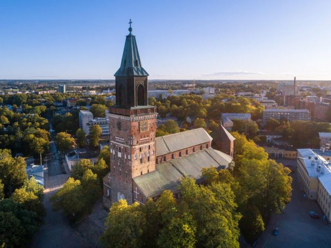 Ankunft in Turku mit Besichtigung von Burg, Dom und Vartiovuorenpuisto-Park. Weiterfahrt nach Helsinki mit Stadtführung: Senatsplatz, Domkirche, Felsenkirche, Sibelius-Park, Design District, Marktplatz und Markthalle. Fahrt zum Hotel bei Jyväskylä.