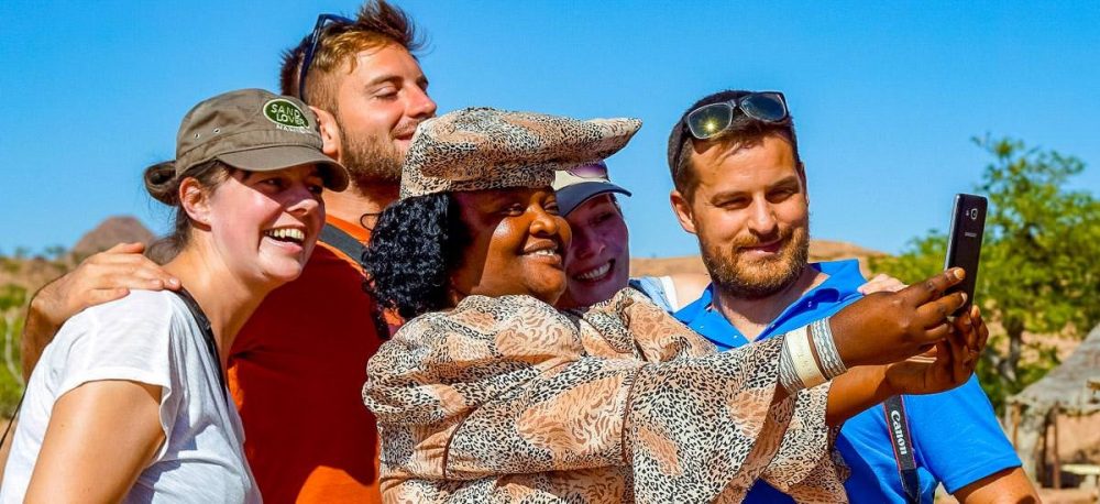 Nach einem ausgiebigen Frühstück verlässt du das Meer und fährst ins Landesinnere. Dort wird die Landschaft wieder grüner und felsiger. Am Ugab Rivier machst du eine Stippvisite bei den nähenden Herero-Frauen. Von der Brücke hast du eine gute Sicht auf den Brandberg, der von den Herero Omukuruwaro, Berg der Götter, genannt wird. Nachmittags steigst du in den offenen Geländewagen. Deine Beobachtungsfahrt endet auf einem besonderen Aussichtspunkt mit spektakulärem Blick auf die Berge und meistens auch auf einen nicht weniger beeindruckenden Sonnenuntergang.