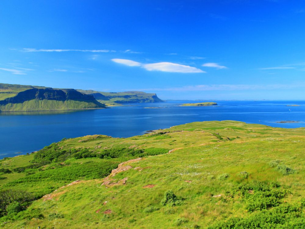 - Die Isle of Skye, eine der schönsten Inseln an der Westküste, begeistert mit den „Rocky Mountains“ von Cuillin bei klarem Wetter.