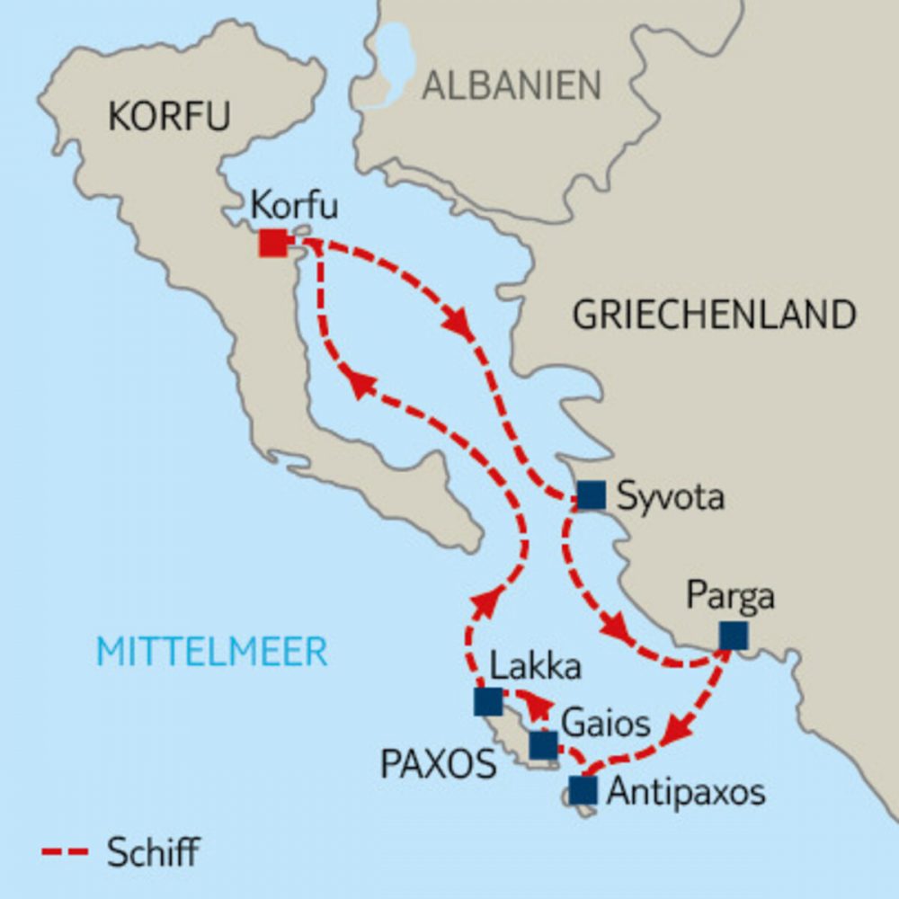 - Die Nacht wird im Hafen der Altstadt von Korfu verbracht, wo ein traditionelles Abschiedsessen mit der Gruppe genossen werden kann (fakultativ).