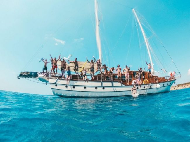 - Da das Schiff nicht am Hafen von Lakka anlegen kann, wird in einer der zahlreichen abgeschiedenen privaten Buchten angelegt.