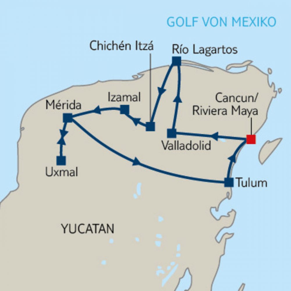 • Abschluss der Rundreise an der Riviera Maya/Cancún mit Transfer zum individuell gebuchten Hotel.