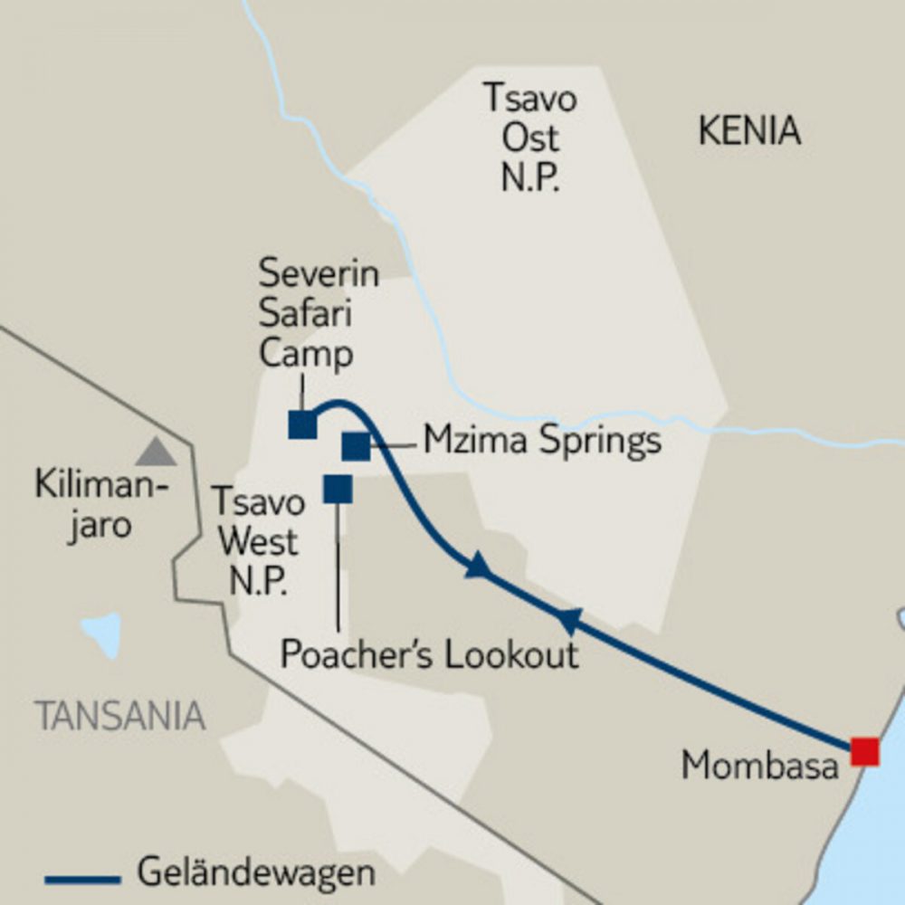 – Tsavo West Nationalpark (ca. 250 km)