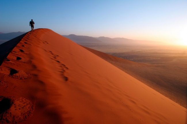 Heute heißt es früh aufstehen! Mit Ihrem Frühstück als Picknick im Gepäck starten Sie Ihre Fahrt Richtung Namib Naukluftpark. Pünktlich zum Sonnenaufgang öffnet dieser seine Tore. Hier besichtigen Sie die Dünen des Sossusvlei. Die letzten 5 km dorthin legen Sie im Allradfahrzeug zurück. Sossusvlei ist eine große, abflusslose Lehmbodensenke, die von teilweise über 300 m hohen Dünen eingeschlossen wird. Von den Dünen aus genießen Sie einen unglaublichen Ausblick über das Dünenmeer der Namib-Wüste. Der Anblick der weiß bis rotbraun schimmernden Giganten weckt eine gewisse Ehrfurcht. Die vielen toten Bäume im dahinterliegenden "Dead Vlei" wirken fast ein wenig gespenstisch. Im Anschluss geht es weiter zum eindrucksvollen Sesriem-Canyon. Hier hat sich der Tsauchab-Fluss ein bis zu 30 m tiefes Bett durch Geröllschichten gegraben, die sich vor 15 bis 18 Millionen Jahren in einer feuchteren Phase der Namib hier ablagerten. Die Entstehung des Canyons liegt 2 bis 4 Millionen Jahre zurück. Übernachtung und Abendessen in Ihrer Unterkunft in der Region Namib Naukluft.