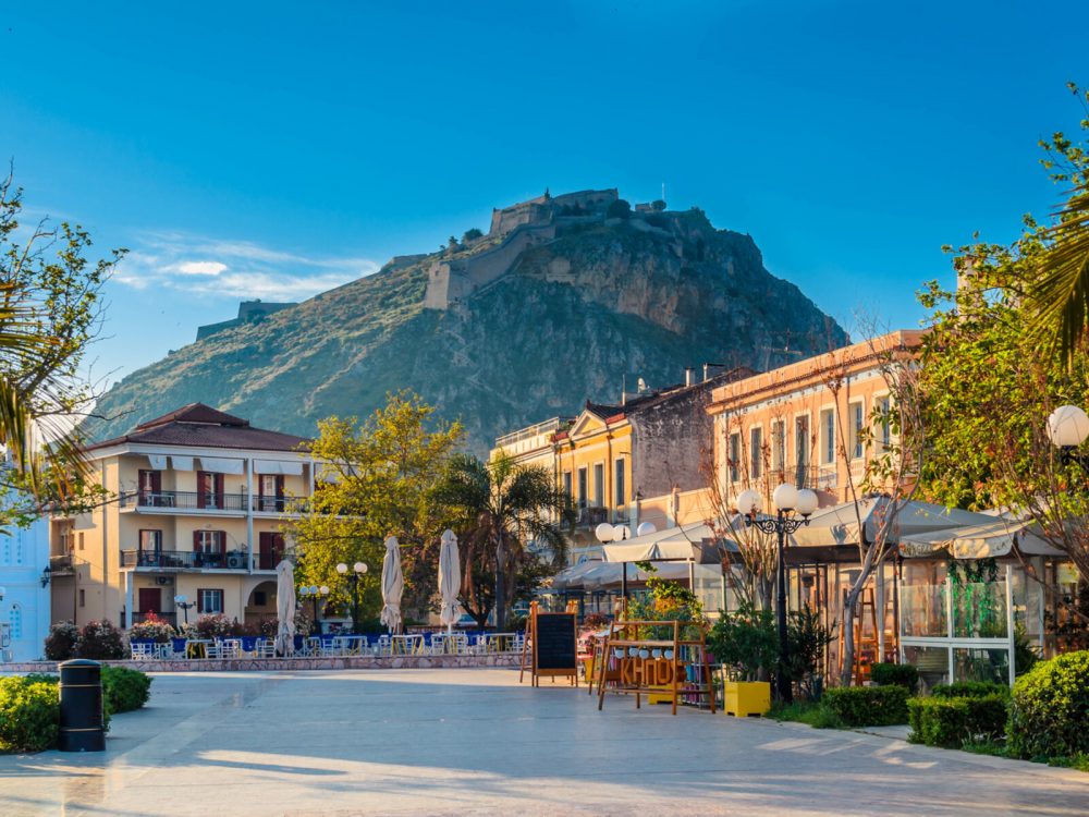 - Stopp in Nafplio, das mit seinen verwinkelten Gassen und charmanten Plätzen als schönste Stadt auf dem Peloponnes gilt.