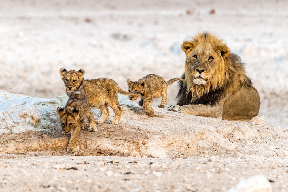 Fahrt zur Unterkunft nahe dem Etosha Nationalpark. Am Nachmittag beginnt die erste Safari im Reisefahrzeug. Bei Buchung des Safari-Pakets erfolgt die Pirschfahrt im offenen 4x4-Geländewagen. Mit etwas Glück zeigen sich vom Aussterben bedrohte Spitzmaulnashörner sowie Löwen, die von großen Zebra- und Gnuherden angezogen werden. An den Wasserstellen, insbesondere am sogenannten „Elefantenbad“, lassen sich häufig Elefanten beobachten.