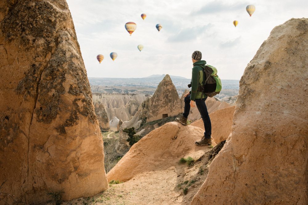Frühmorgens Möglichkeit zur Ballonfahrt über die Tuffstein-Landschaften (vor Ort buchbar). Wanderung über den Boztepe Tafelberg zum Zelve-Tal, weiter zu den Erdpyramiden von Pasabağ und zum Dorf Çavusin.