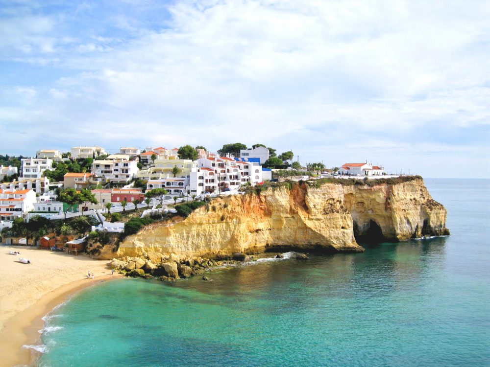 Im Küstendorf Burgau beginnt die Tour entlang einer vom Meer geprägten Landschaft: Hohe Klippen, zerklüftete Felsen, Buchten und Grotten zeigen die Kraft der Wellen. Das Rauschen und der Geruch des Atlantiks begleiten den Weg bis zum Leuchtturm an den Felsen von Ponta da Piedade.
