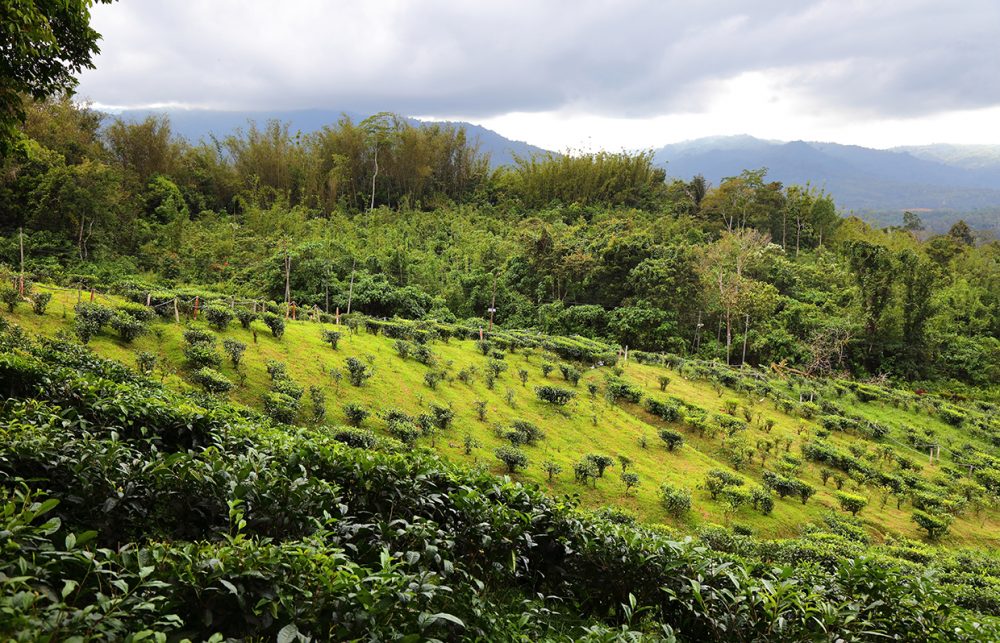 - Teezeremonie mit Blick auf das weitläufige Grün der Teefelder