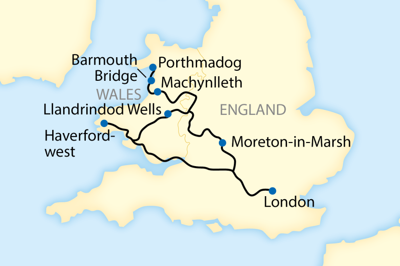 Ihre Luxus Reise nach Wales beginnt an Londons Victoria Station, wo Sie in den Britannic Explorer steigen. Nachdem Sie Ihr Abteil bezogen haben, ist es an der Zeit, in einem der botanisch inspirierten Restaurantwagen zu entspannen. Dort wartet ein Nachmittags-Tee mit traditionellen walisischen Leckereien. Während Sie genießen, ziehen die Cotswolds im warmen Nachmittagslicht an Ihnen vorüber. Im Laufe des Abends können Sie sich eine Behandlung in der Wellness-Suite gönnen, den einen oder anderen Gin in der Bar genießen und Ihre neuen Freunde bei einem Brettspiel schlagen. Nach einem köstlichen Abendessen an Bord lädt Ihr Abteil zur Nachtruhe. (A)